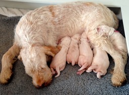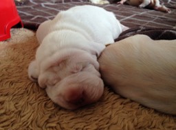 Bice geht in ihrer Mutterrolle komplett auf. Während sie sich bei Pippa’s letztem Wurf schon am 4. Tag mit in die Wurfkiste geschlichen hat, darf Pippa bei ihren Babies maximal über die Kante schauen. Das ändert sich wahrscheinlich, sobald sie die Augen öffnen, was nicht mehr lange dauert. Die 1,000g Marke ist seit heute bei allen geknackt.